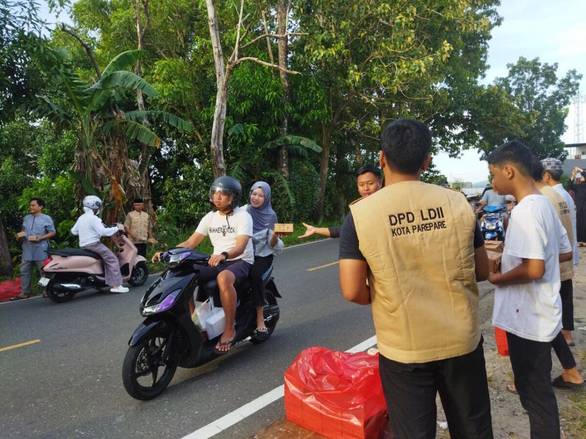 Parepare – Dewan Pimpinan Daerah (DPD) Lembaga Dakwah Islam Indonesia (LDII) Kota Parepare mengadakan kegiatan pembagian takjil gratis bagi masyarakat sekitar dan pengendara yang melintas. Komitmen berbagi di bulan suci Ramadan ini dilaksanakan di depan Sekretariat DPD LDII Kota Parepare, Galung Maloang, Kota Parepare, pada Sabtu (28/2/2026).
