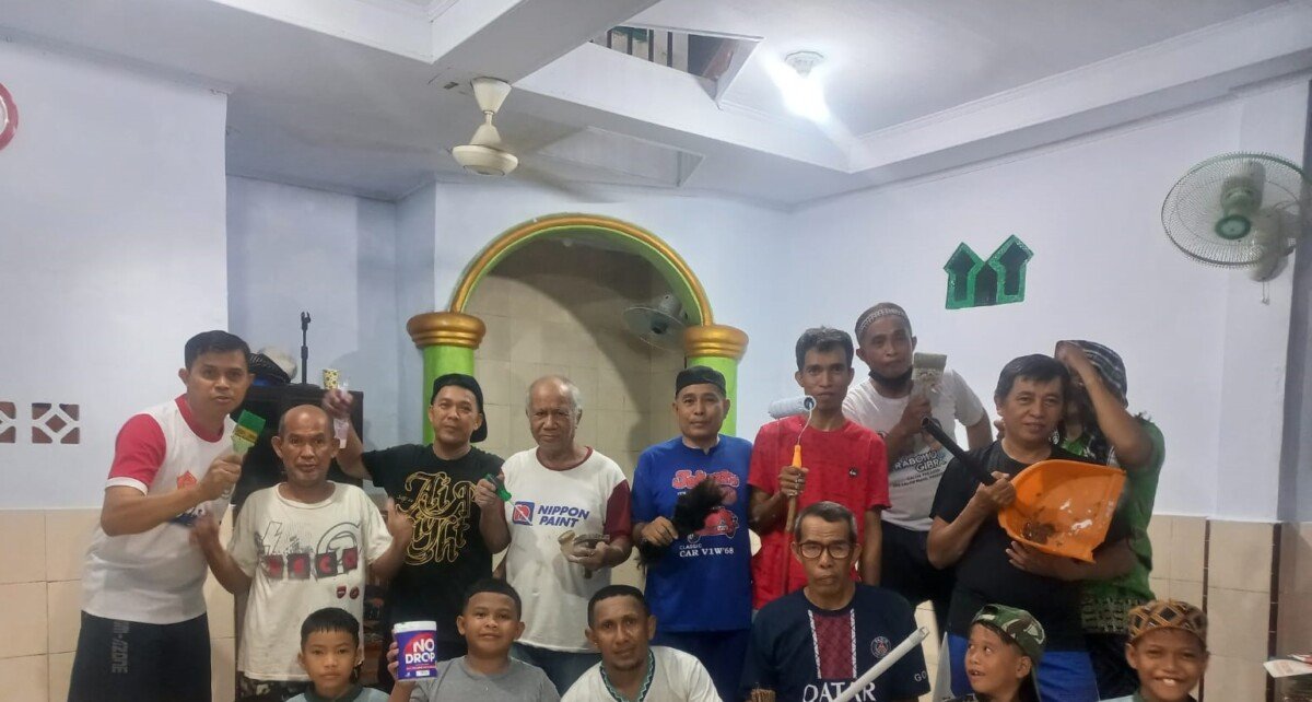 Suasana gotong royong yang terjalin mencerminkan nilai ukhuwah dan solidaritas yang kuat di tengah masyarakat. Pengecetan dinding musholla yang mulai pudar dilakukan secara bergantian, sementara sebagian warga lainnya membersihkan lantai, jendela, dan halaman sekitar agar terlihat lebih rapi dan asri.
