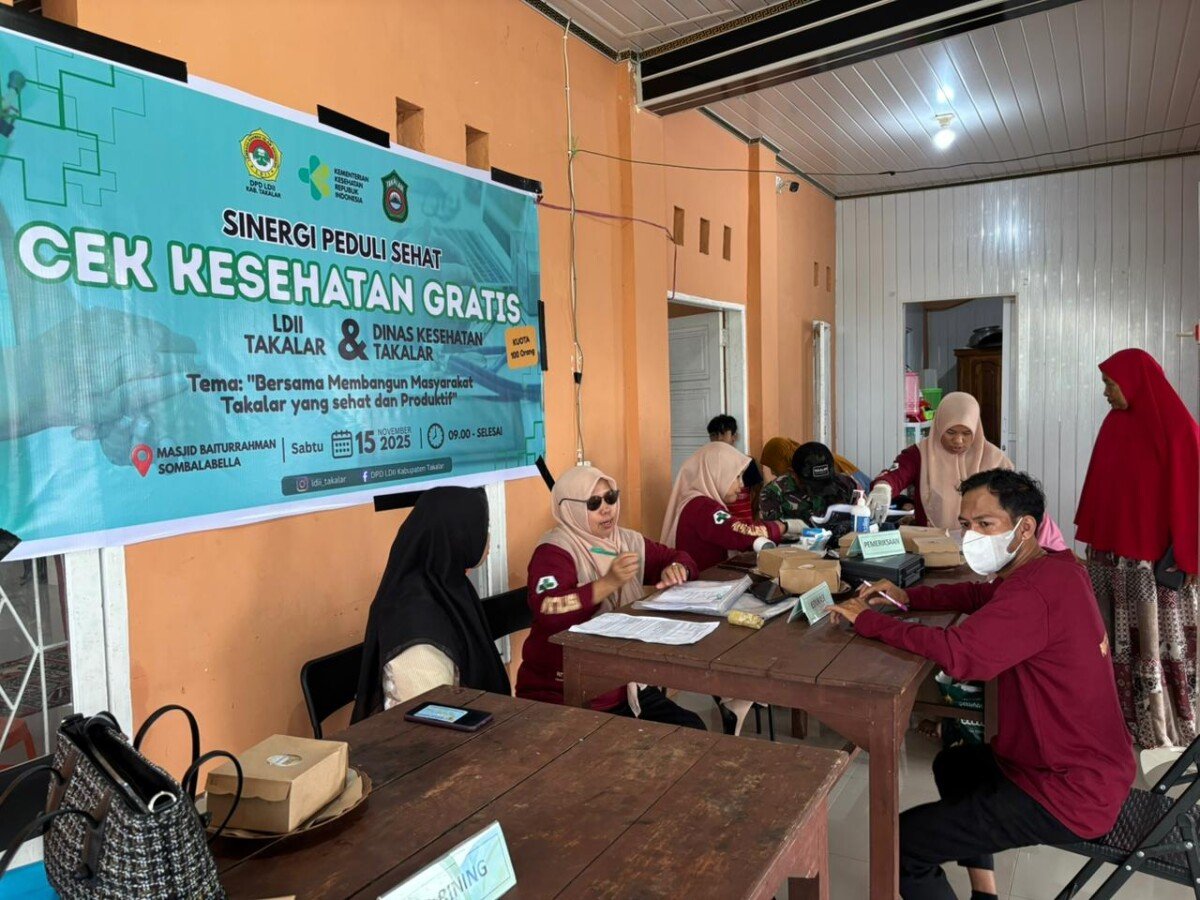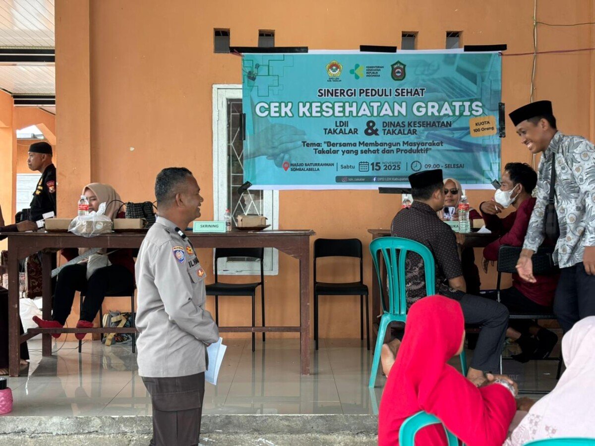 Takalar – Dewan Pimpinan Daerah (DPD) Lembaga Dakwah Islam Indonesia (LDII) Kabupaten Takalar menggelar kegiatan Cek Kesehatan Gratis (CKG) bagi warga. Kegiatan ini berlangsung sejak pagi hingga siang pada Sabtu (15/11/2025) bertempat di halaman Masjid Baiturrohman, Jalan Sultan Hasanuddin Tala, Kelurahan Sombala Bella, Kecamatan Pattallassang, Kabupaten Takalar, Sulawesi Selatan.
