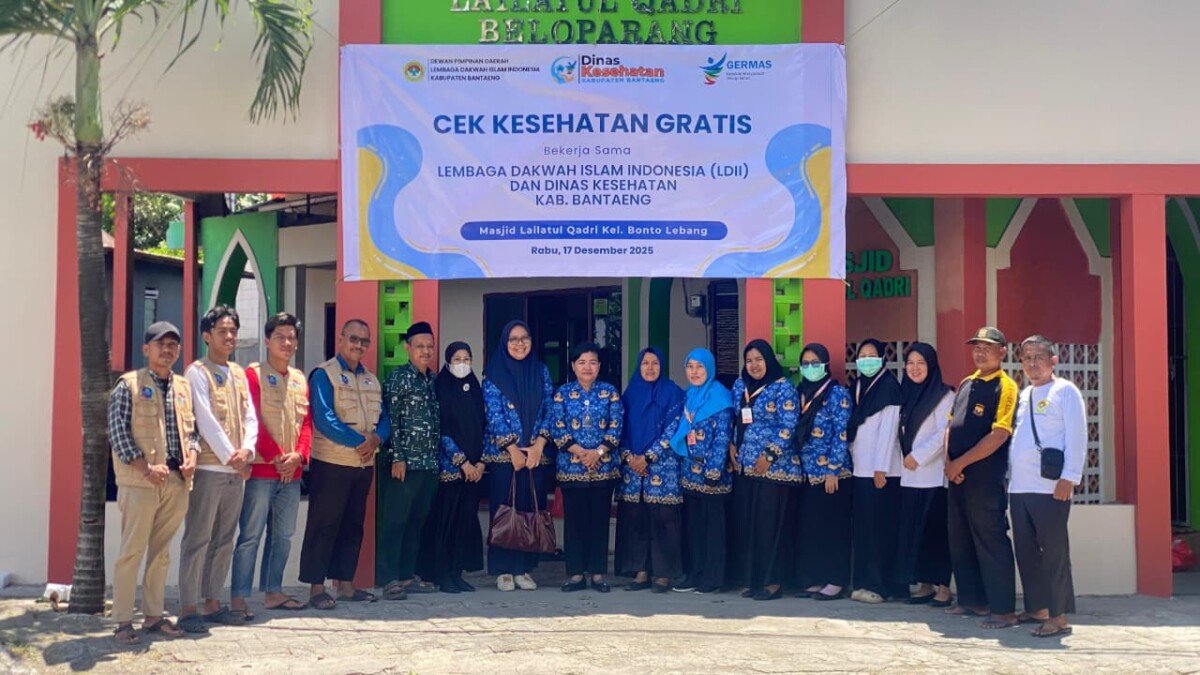 Bantaeng – Lembaga Dakwah Islam Indonesia (LDII) Kabupaten Bantaeng bekerja sama dengan Puskesmas Bissappu menggelar program Cek Kesehatan Gratis (CKG) di halaman Masjid Lailatul Qadri Beloparang, Kecamatan Bissappu, Kabupaten Bantang, Sulawesi Selatan, pada Rabu (17/12/2025).